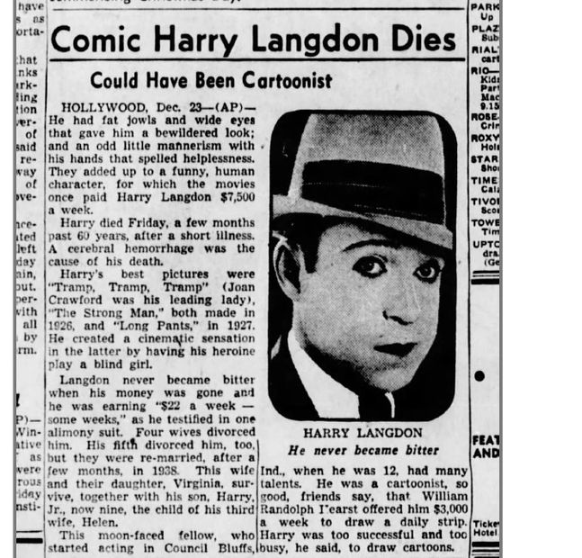 2001 Cult Movies Magazine #35 interview with Harry Langdon Jr. pg. 3 of 4.....complete article available in downloads page