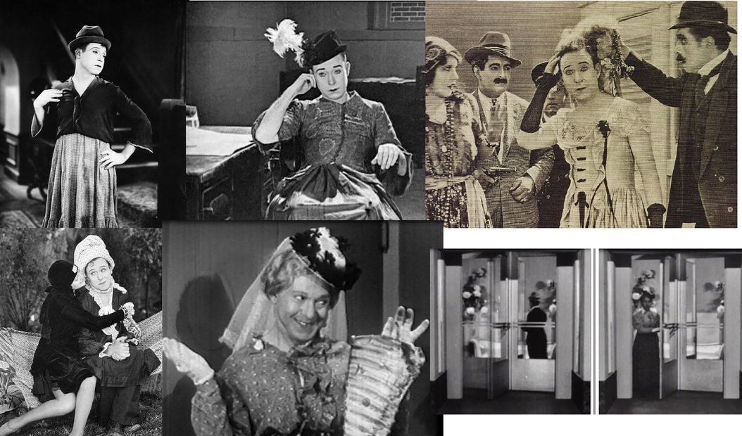 DownloadThere are some minor synchronicities and coincidences I've noticed over the last 20 years and, on their own, they might be dismissed as pure randomness. But given all the more significant coincidences and commonalities I've already discussed on the other pages, I felt it was worth mentioning them. I have noticed quite a number of small clues in some of Harry's movies that hinted at his eventual reincarnation. The first thing I noticed was the number of drag sequences in Harry's films. Sure, EVERY major silent and sound comedian donned a dress for laughs at some point -- it's an age old tradition, right? The difference with Harry was the frequency and the sequences were LONG! In THE CHASER, the plot of the movie centers around role reversal...Harry is punished by being forced to wear a skirt throughout most of the movie and becoming the "wife", while his wife becomes the "husband". In SEA SQUAWK and SKIRT SHY, he's wearing a dress for almost the entire duration of both films. I made a collage of scenes from each of these films. Top row: The Chaser, His First Flame, The Sea Squawk. Bottom row: Skirt Shy, Double Trouble and a soundie called Beautiful Clothes. The soundie (a 1940's version of a music video) ends with Harry going through a revolving door, then using a split screen effect, he comes out the other side wearing a dress! Another short film where Harry disguises himself in a dress is TIRED FEET (not pictured). So that's seven films in all, quite a lot. What I'm unsure about is how much involvement Harry had in the decision to implement drag sequences in so many films. THE CHASER was all his idea since he directed it, but the other films were not officially written/directed by Harry.