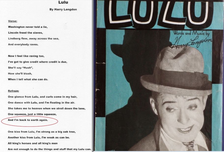 UPDATE 10-3-2019....for the first time, I heard a song that Harry had written in 1932 called "Lulu". It happened on September 28, 2019 at the Niles Essanay Silent Film Museum in Fremont, CA. It had a bouncy ragtime tempo I loved. Most interesting was a prophetic line in the refrain: AND I'M BACK TO EARTH AGAIN. I'll include a video I shot at the event. It was a sing-along and hearing the audience in unison sing that line sent chills up my spine.